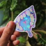 2.5" x 2.4". Printed on glossy scratch-proof vinyl. Water resistant, not recommended for outdoor use. Original illustration © Mittenmeat 2022.